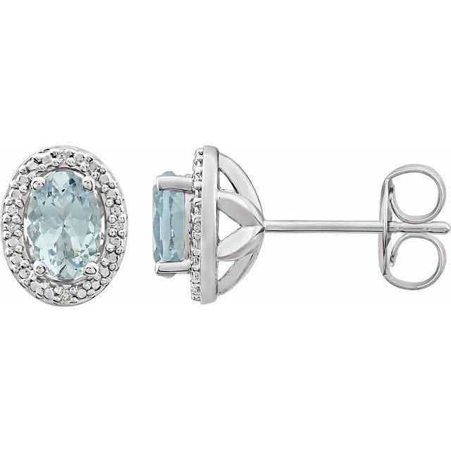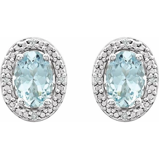 Sterling Silver Natural Aquamarine & .025 Ctw Natural Diamond Earrings