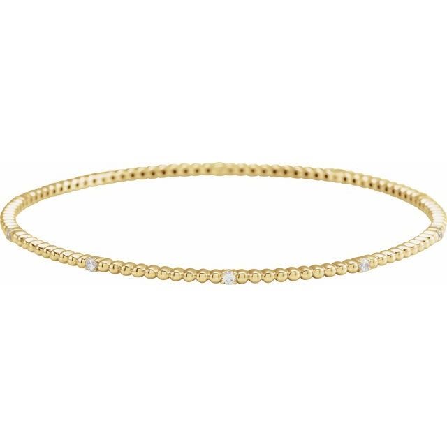 14k Yellow 1/3 Ctw Natural Diamond Beaded Bangle 7 3/4′ Bracelet