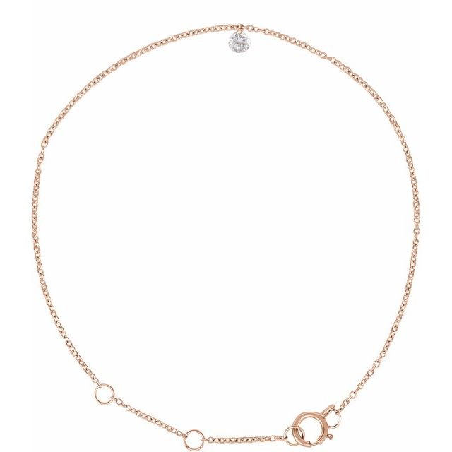 14k Rose 1/6 Ct Drilled Natural Diamond Solitaire 6 1/2-7 1/2′ Bracelet