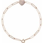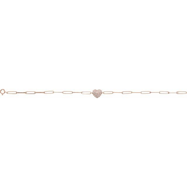 14k Rose 1/3 Ctw Natural Diamond Heart & Paperclip-style 7′ Bracelet