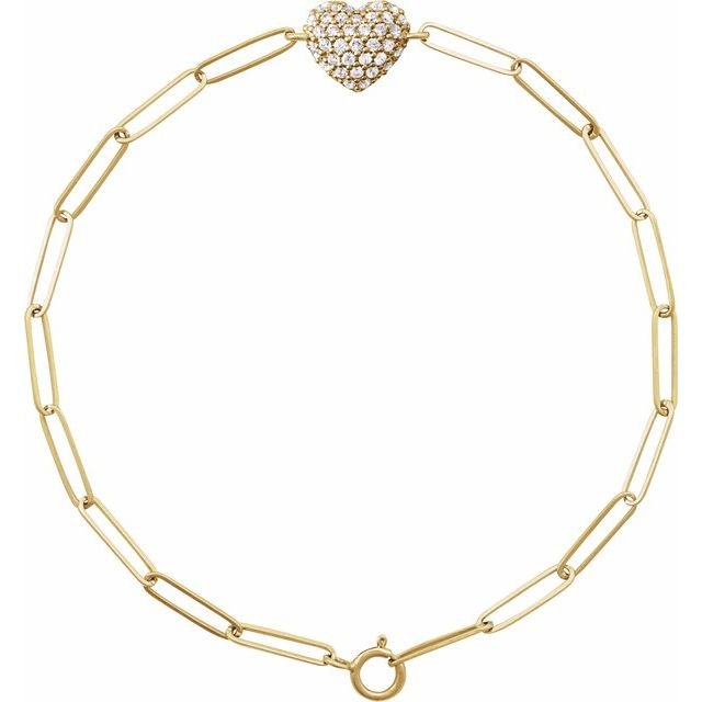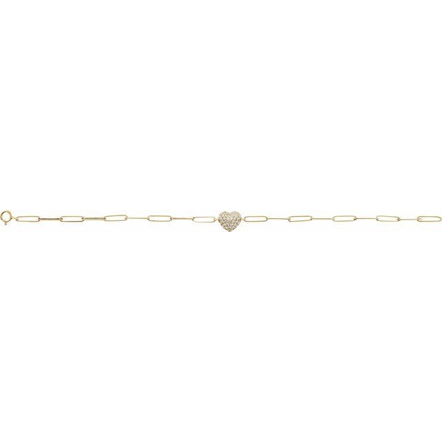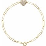 14k Yellow 1/3 Ctw Natural Diamond Heart & Paperclip-style 7′ Bracelet