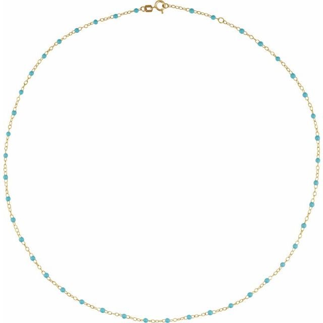14k Yellow 2 Mm Adjustable Turquoise Enamel Bead 17-18′ Chain