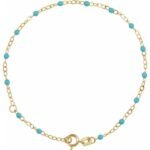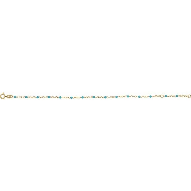 14k Yellow 2 Mm Adjustable Turquoise Enamel Bead 6-7′ Chain