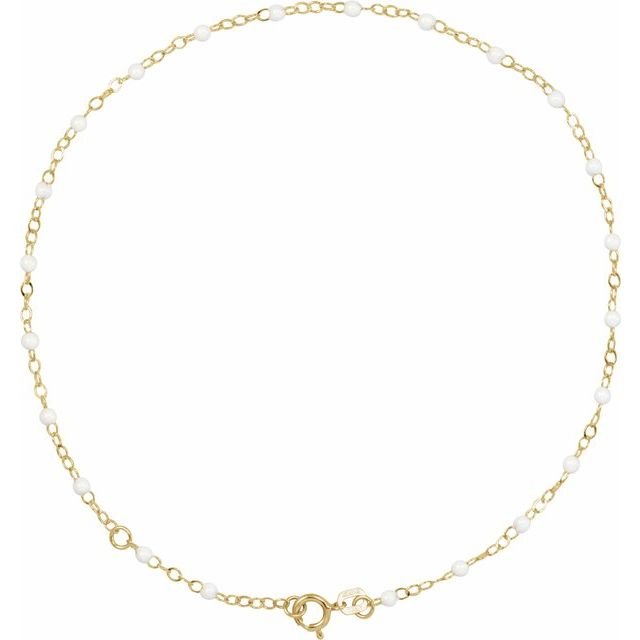 14k Yellow 2 Mm Adjustable White Enamel Bead 9-10′ Chain