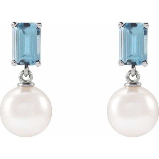 14k White Cultured White Akoya Pearl & Natural Aquamarine