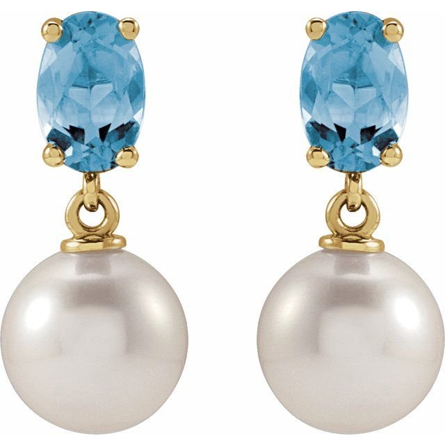 14k Yellow Cultured White Akoya Pearl & Natural Aquamarine