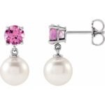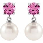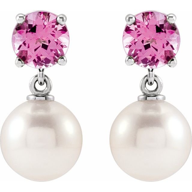 Sterling Silver Cultured White Akoya Pearl & Natural Pink Tourmaline