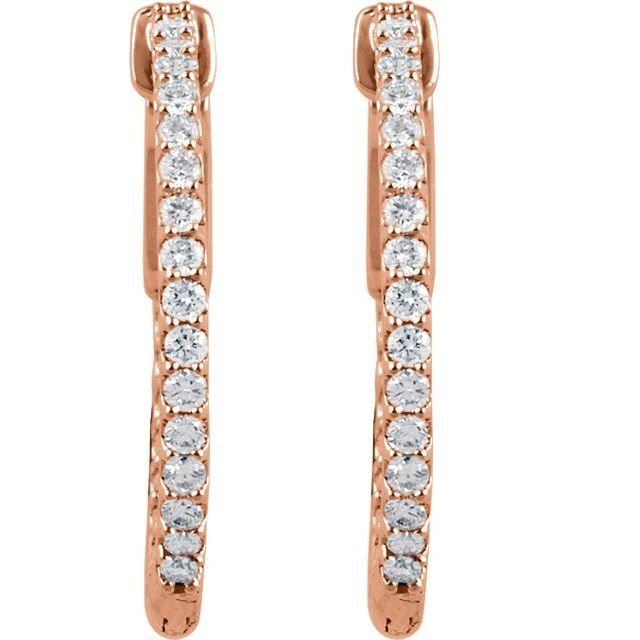 14k Rose 3/4 Ctw Lab-grown Diamond Inside-outside 23 Mm Hinged Hoop Earrings