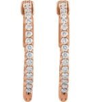14k Rose 3/4 Ctw Natural Diamond Inside-outside 23 Mm Hinged Hoop Earrings