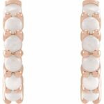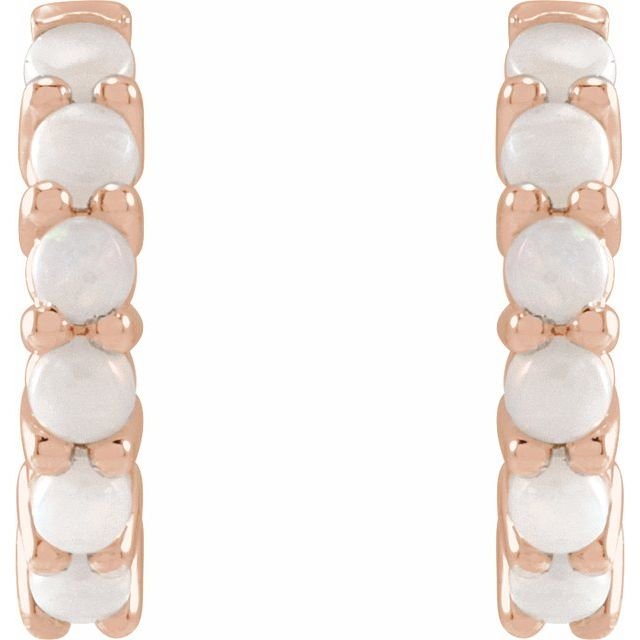 14K Rose Gold 12.2 mm White Opal Cabochon Hoop Earrings