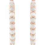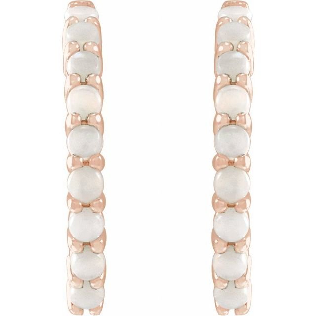 14k Rose Natural White Opal Cabochon Hinged 20 Mm Hoop Earrings