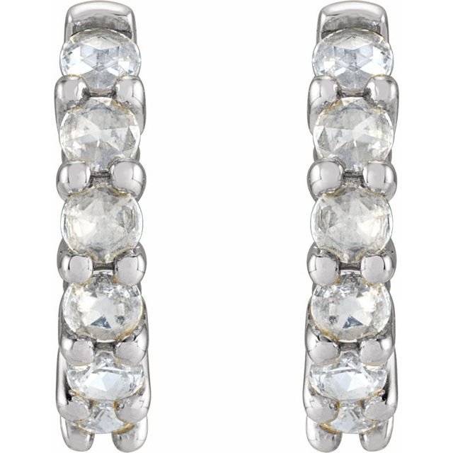 14k White 1/5 Ctw Rose-cut Natural Diamond Hinged 12.2 Mm Hoop Earrings