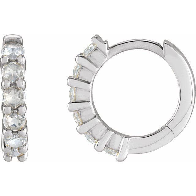 14k White 1/8 Ctw Rose-cut Natural Diamond 12.2 Mm Hoop Earring