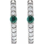 14k White Lab-grown Emerald & 1/8 Ctw Natural Diamond 13.6 Mm Hoop Earring