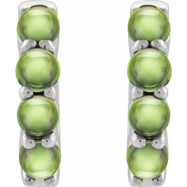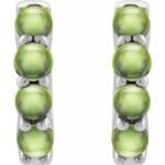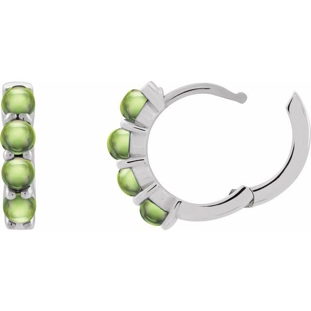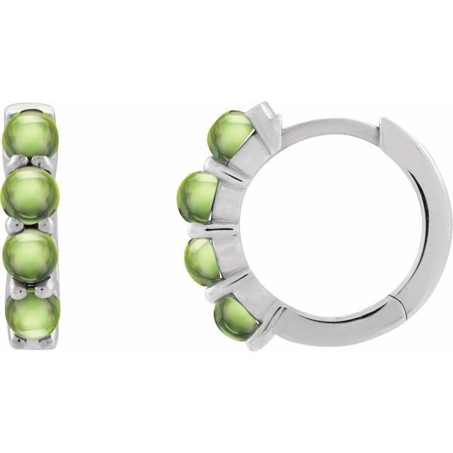 14k White Natural Peridot Cabochon Hinged 14.7 Mm Hoop Earrings
