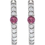 14k White Natural Pink Tourmaline & 1/8 Ctw Natural Diamond 13.6 Mm Hoop Earring