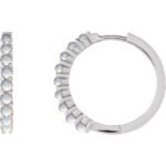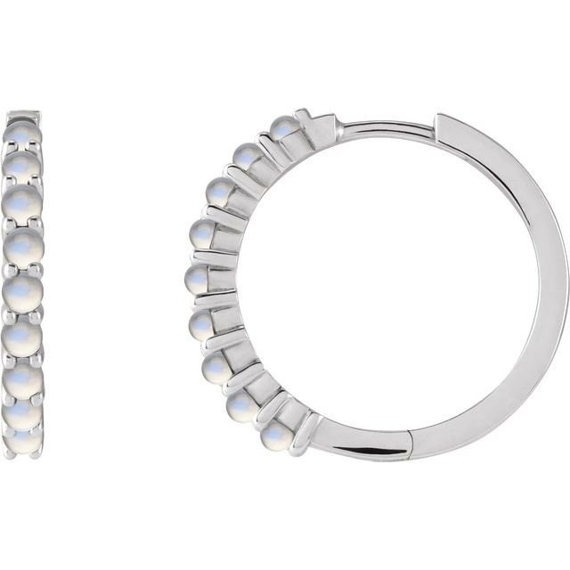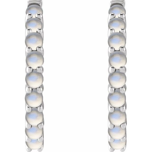 Platinum Natural Rainbow Moonstone Cabochon Hinged 20 Mm Hoop Earrings