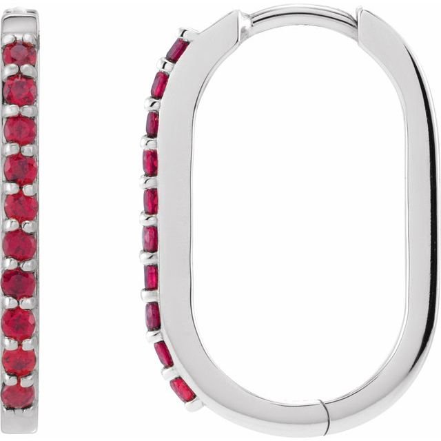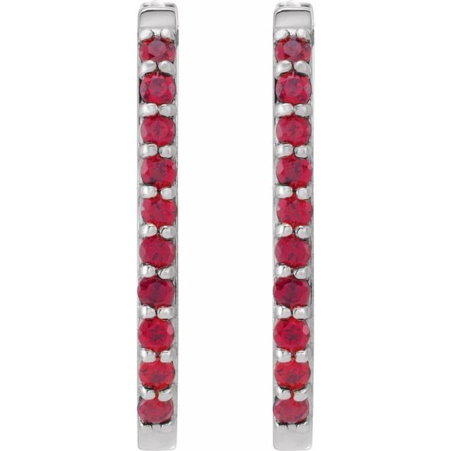 Sterling Silver Lab-grown Ruby 20 Mm Hoop Earrings