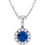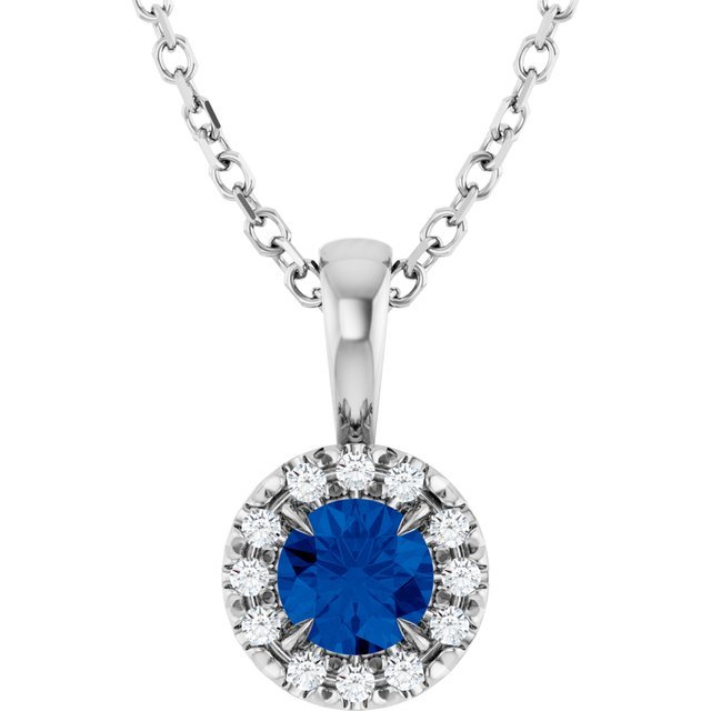 Platinum 4 Mm Lab-grown Blue Sapphire & .05 Ctw Natural Diamond 16-18′ Necklace