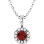 Platinum 4 Mm Natural Mozambique Garnet & .05 Ctw Natural Diamond 16-18′ Necklace