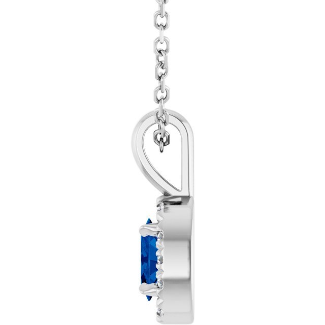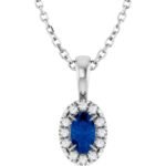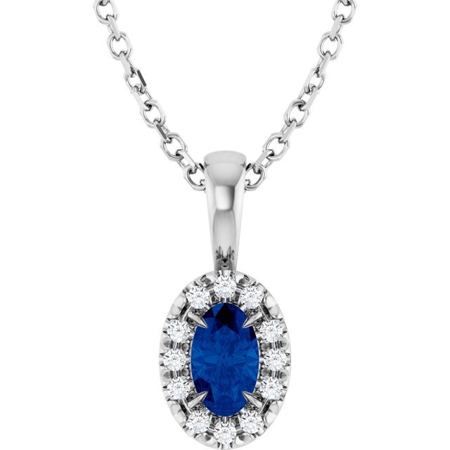 Platinum 5×3 Mm Lab-grown Blue Sapphire & .05 Ctw Natural Diamond 16-18′ Necklace