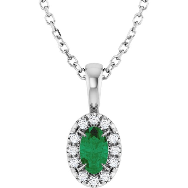 Platinum 5×3 Mm Lab-grown Emerald & .05 Ctw Natural Diamond 16-18′ Necklace