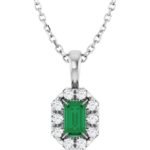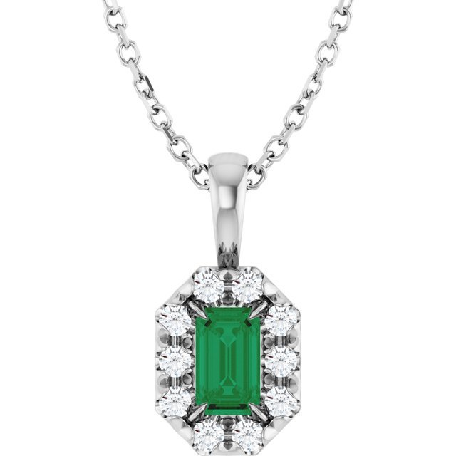 Platinum 5×3 Mm Lab-grown Emerald & 1/8 Ctw Natural Diamond 16-18′ Necklace