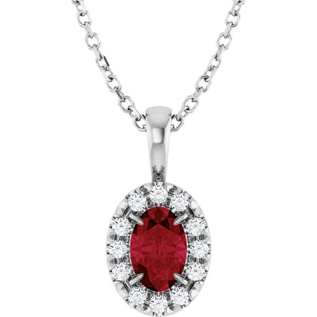Platinum 5×3 Mm Lab-grown Ruby & .05 Ctw Natural Diamond 16-18′ Necklace