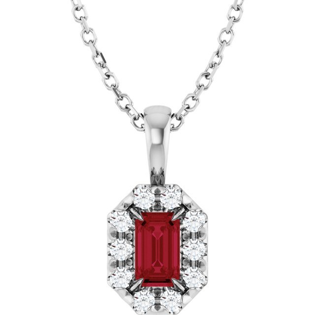 Platinum 5×3 Mm Lab-grown Ruby & 1/8 Ctw Natural Diamond 16-18′ Necklace