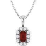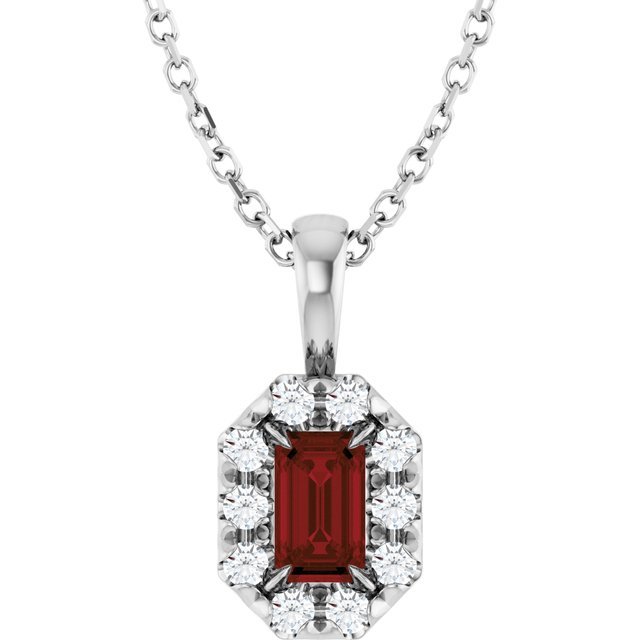 Platinum 5×3 Mm Natural Mozambique Garnet & 1/8 Ctw Natural Diamond 16-18′ Necklace