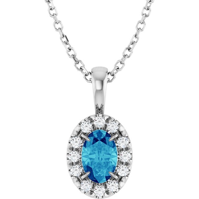Platinum 6×4 Mm Natural Blue Zircon & 1/10 Ctw Natural Diamond 16-18′ Necklace