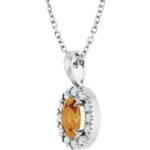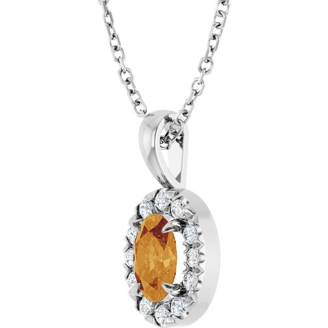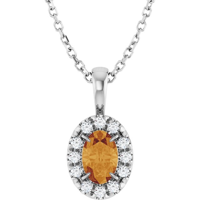 Platinum 6×4 Mm Natural Citrine & 1/10 Ctw Natural Diamond 16-18′ Necklace
