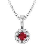 Sterling Silver 3 Mm Lab-grown Ruby & .03 Ctw Natural Diamond 16-18′ Necklace