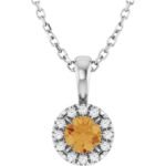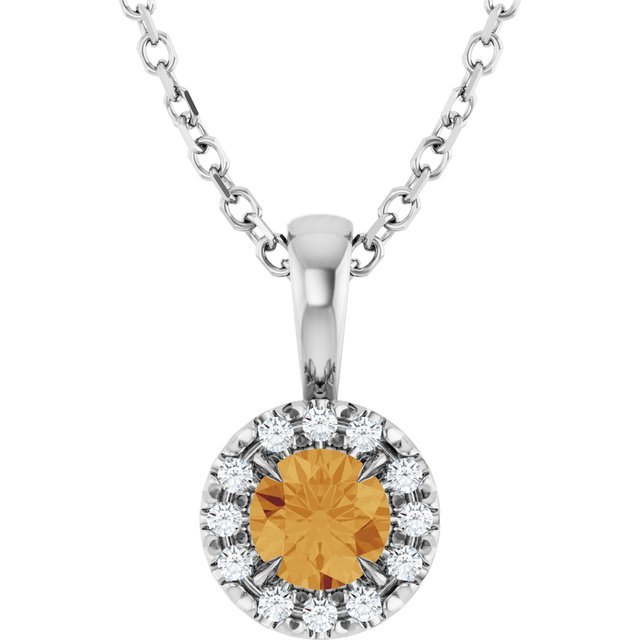 Sterling Silver 4 Mm Natural Citrine & .05 Ctw Natural Diamond 16-18′ Necklace