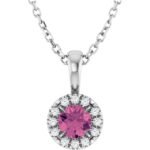 Sterling Silver 4 Mm Natural Pink Tourmaline & .05 Ctw Natural Diamond 16-18′ Necklace