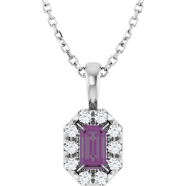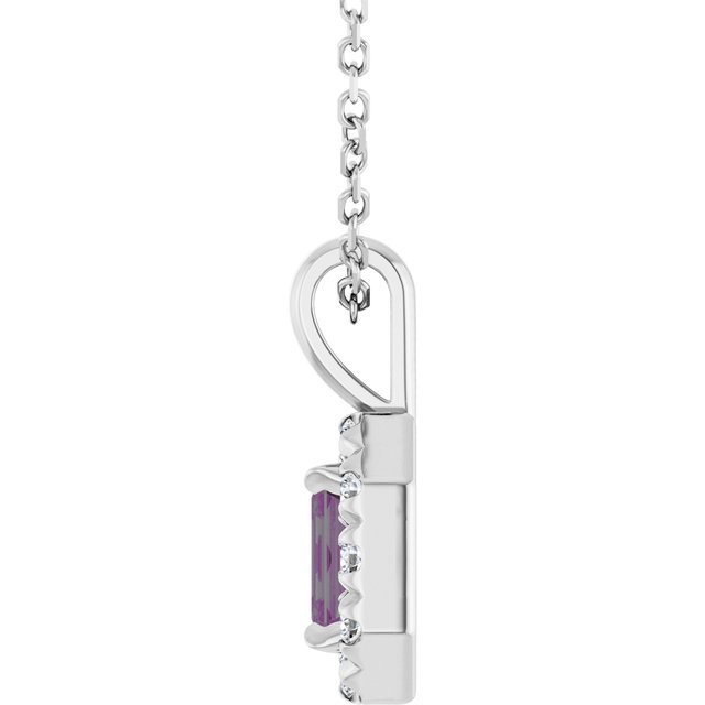 Sterling Silver 5×3 Mm Lab-grown Alexandrite & 1/8 Ctw Natural Diamond 16-18′ Necklace
