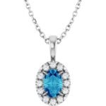 Sterling Silver 5×3 Mm Natural Blue Zircon & .05 Ctw Natural Diamond 16-18′ Necklace
