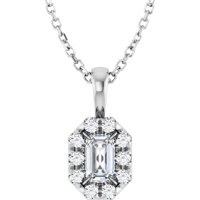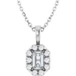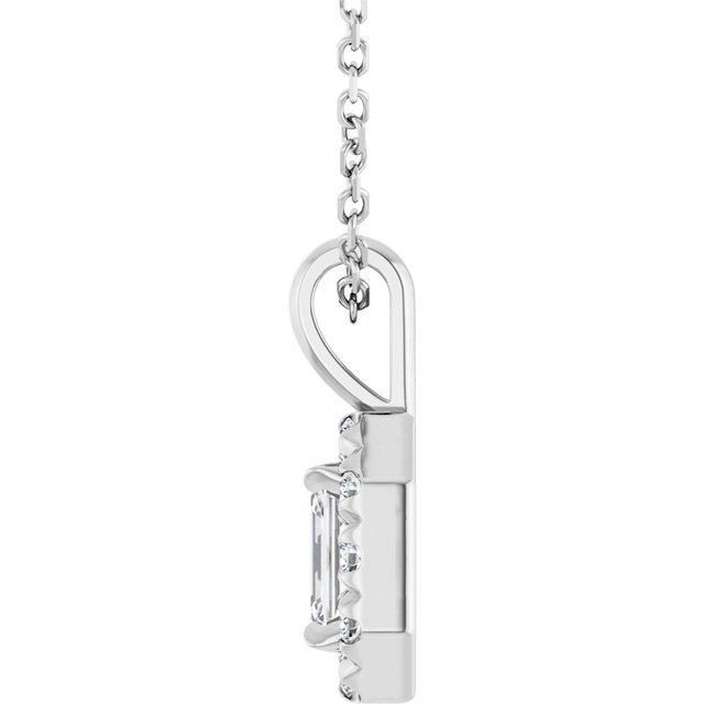 Sterling Silver 5×3 Mm Natural White Sapphire French-set Halo-style 16-18′ Necklace