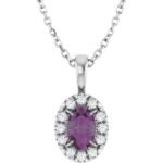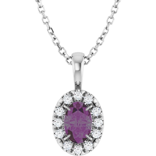 Sterling Silver 6×4 Mm Lab-grown Alexandrite & 1/10 Ctw Natural Diamond 16-18′ Necklace
