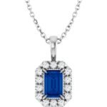 Sterling Silver 6×4 Mm Lab-grown Blue Sapphire & 1/5 Ctw Natural Diamond 16-18′ Necklace