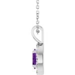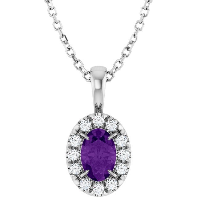 Sterling Silver 6×4 Mm Natural Amethyst & 1/10 Ctw Natural Diamond 16-18′ Necklace