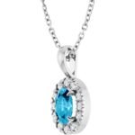 Sterling Silver 6×4 Mm Natural Aquamarine & 1/10 Ctw Natural Diamond 16-18′ Necklace