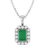 Sterling Silver 6×4 Mm Natural Emerald & 1/5 Ctw Natural Diamond 16-18′ Necklace