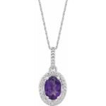 Sterling Silver Natural Amethyst & .01 Ctw Natural Diamond 18′ Necklace
