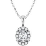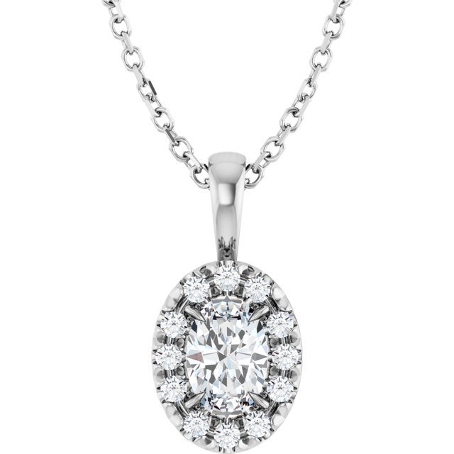 Sterling Silver 6×4 Mm Natural White Sapphire & 1/10 Ctw Natural Diamond 16-18′ Necklace