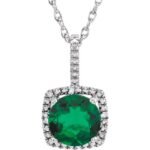 Sterling Silver 7 Mm Lab-grown Emerald & .015 Ctw Natural Diamond 18′ Necklace