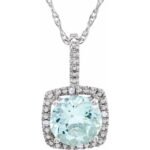 Sterling Silver 7 Mm Natural Aquamarine & .015 Ctw Natural Diamond 18′ Necklace