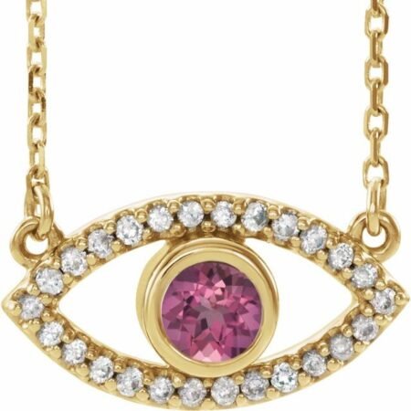 Sterling Silver Lab-grown Emerald & Natural White Sapphire Evil Eye 16′ Necklace