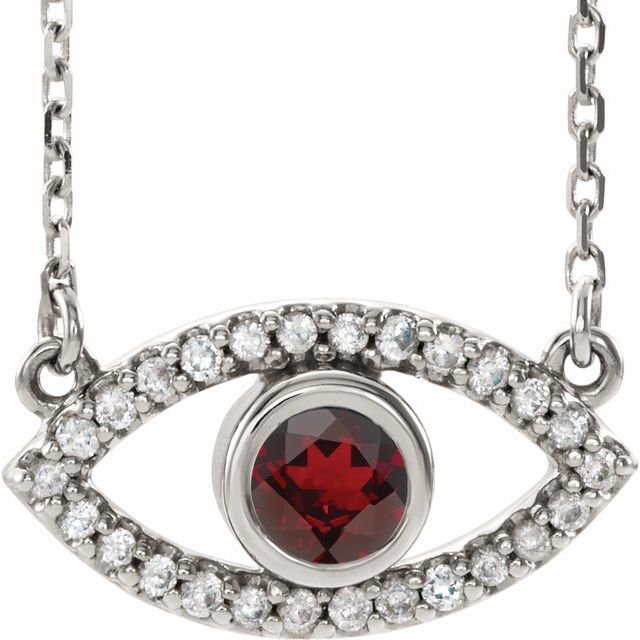 Sterling Silver Natural Mozambique Garnet & Natural White Sapphire Evil Eye 18′ Necklace