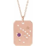 14k Rose Natural Amethyst & .01 Ctw Natural Diamond Sagittarius Constellation 16-18′ Necklace